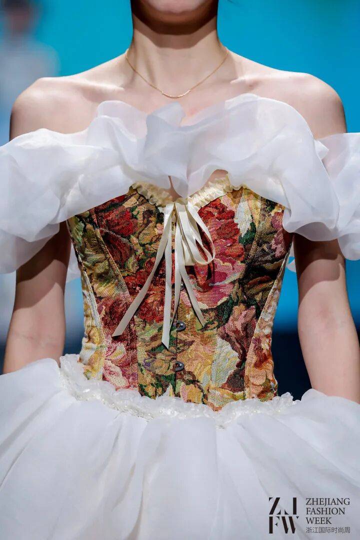 案例有很多,近期一个比较典型的是与我们与西纳维思(杭州)服装服饰有限公司的合作。他们不仅赞助了本次秀场的部分服装参加省赛,其中一些合作作品也获得了不错的奖项,我们的合作不止于赞助参赛。比如,去年我们与该公司共同举办了首届“花与珍珠匣”洛丽塔服装设计大赛。在整个设计过程中,学生会吸纳企业的专业意见,这让学生在发挥创意的同时,也能深刻理解企业对服装专业人才的真实需求。通过这种深度协同,最终产出的作品和取得的成果都非常不错。