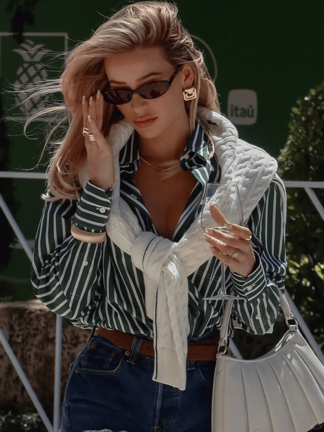 2. 长外套+小包包:视觉显高
