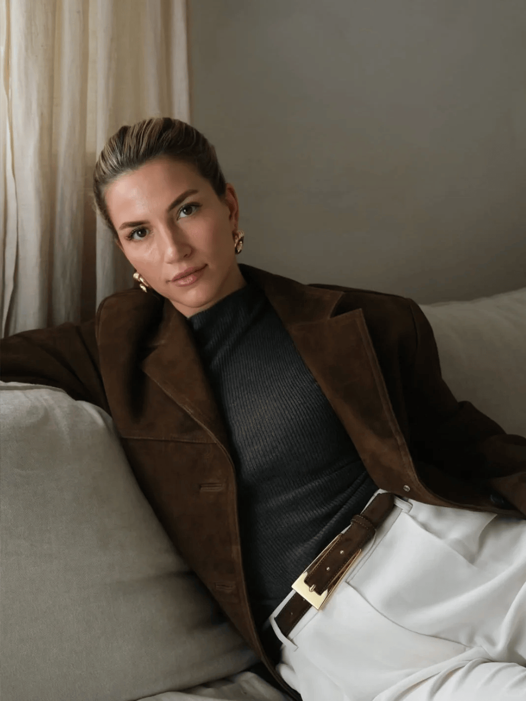 冬日穿搭易显臃肿,“上宽下紧”或“外宽内紧”的搭配能反衬双腿纤细,穿出轻盈感。