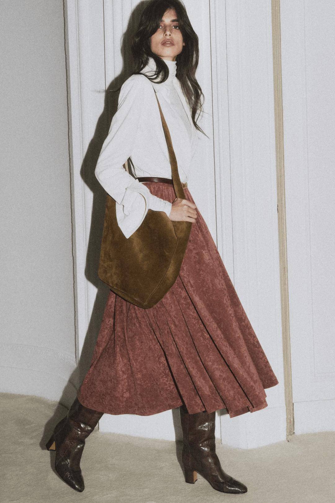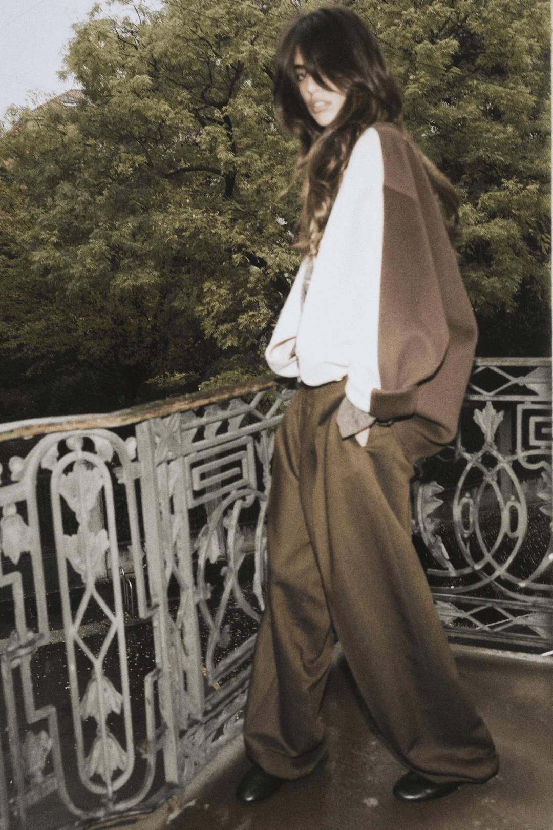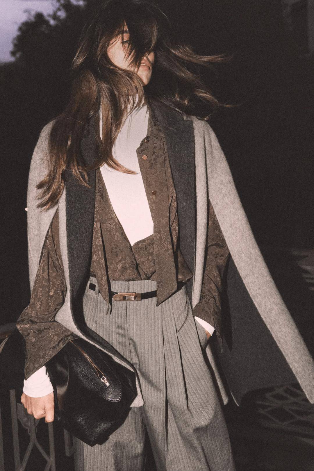 剪裁设计 以宽松但修身的"微廓形"(Micro Silhouette)为主,避免过度宽大的拖沓感;连衣裙采用高腰线+A字摆设计,优化身材比例;大衣则采用落肩袖+直筒版型,兼顾休闲与优雅。
