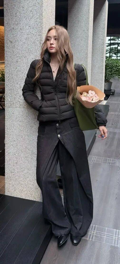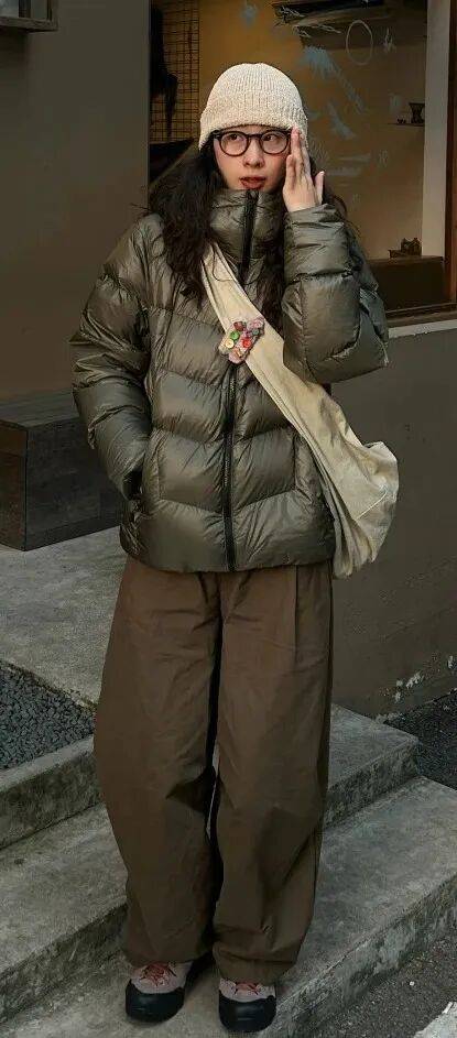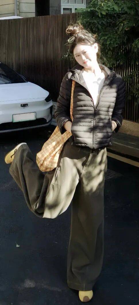 职场羽绒服 + 阔腿裤的组合,关键在 “去臃肿、显利落”。