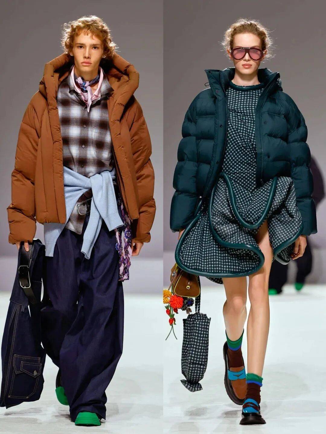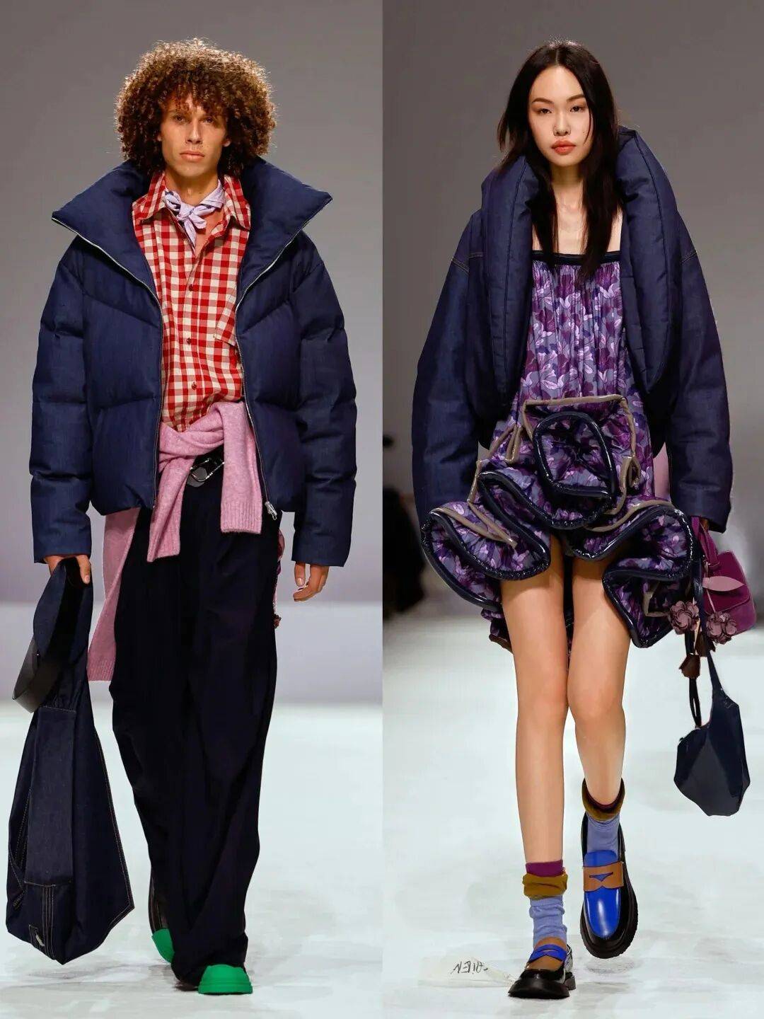 就像波司登秀场上那些让人眼前一亮的穿搭,版型简约的基础款羽绒服,通过外套与单品的色彩巧思+层次叠穿,玩转出时髦又吸睛的个性穿搭。
