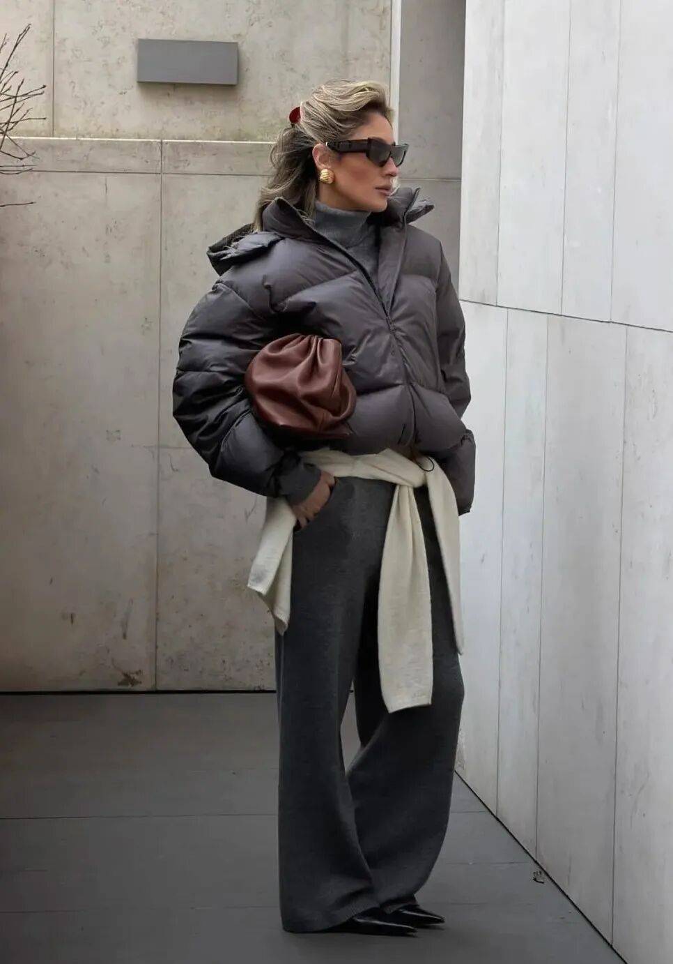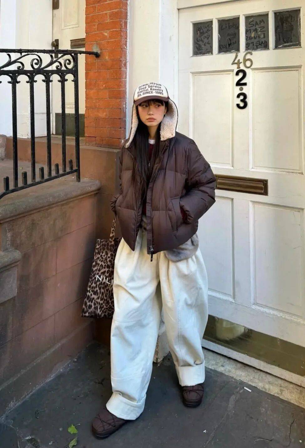 羽绒服 + 阔腿裤,把冬日穿搭的舒适与精致拿捏到位,成为冬日经典CP。