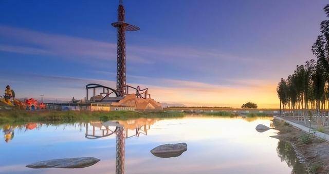 | 图片7 | 水域倒映远处高塔与建筑,蓝紫色渐变天空,右侧树木排列 | 察尔汗盐湖或城市湿地景观,体现生态之美 |