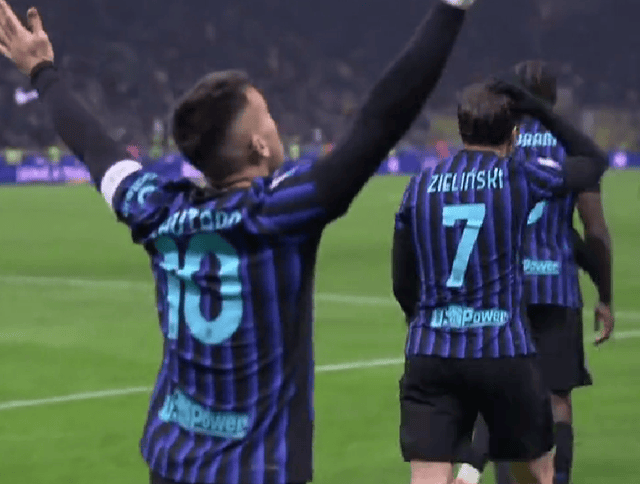 极有可能是本场比赛 泽林斯基破门后 或 劳塔罗进球后 的场景