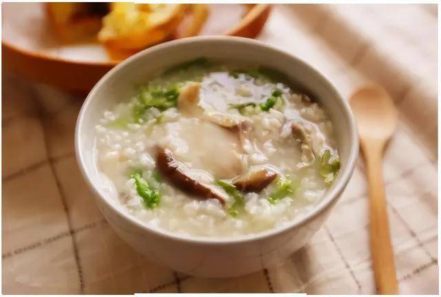| 17 | 蔬菜香菇粥 | 香菇鱼片粥 | 粥+绿菜+褐香菇 |