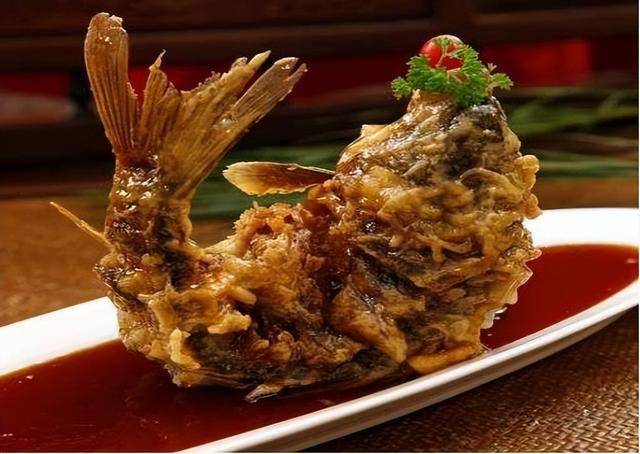 | 2 | 糖醋鲤鱼 | 糖醋鲤鱼 | 金黄炸鱼+红酱+香菜 |