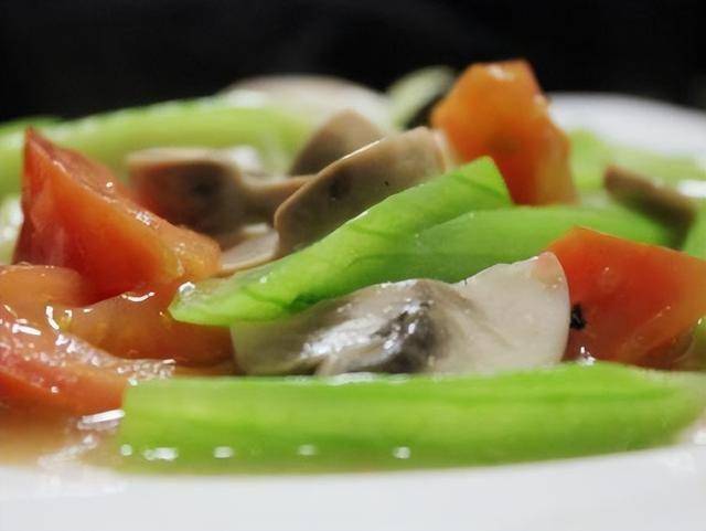 | 15 | 蔬菜番茄蘑菇 | 三菇烩丝瓜(近似) | 绿菜+红番茄+棕蘑 |
