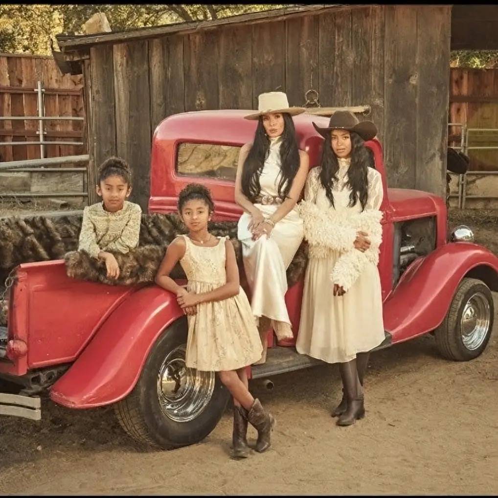 瓦妮莎在社交媒体上晒出了一张西部牛仔风的全家福。木质马厩旁停着一辆红色老爷车,她和三个女儿戴着牛仔帽、穿着马靴,腰间皮带的金属扣在阳光下微微发亮。瓦妮莎的白色长裙勾勒出紧致的腰线,黑色卷发随风扬起,你几乎认不出这就是几年前那个被悲痛压垮、体重飙至200斤的女人。