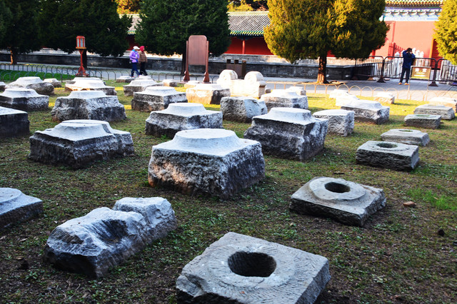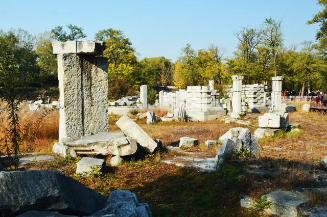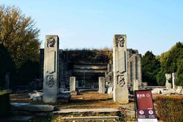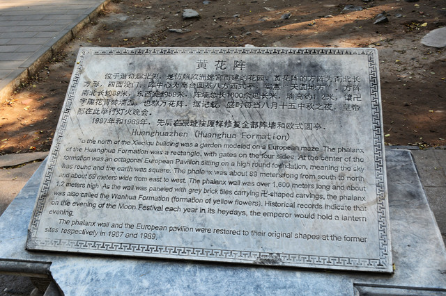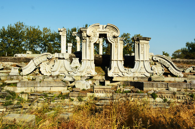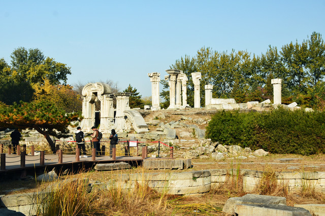 建筑规模 占地3.5平方千米,一百五十余景,集古今中外园林之大成 仅存少量石构遗迹,如大水法残柱、黄花阵迷宫墙基