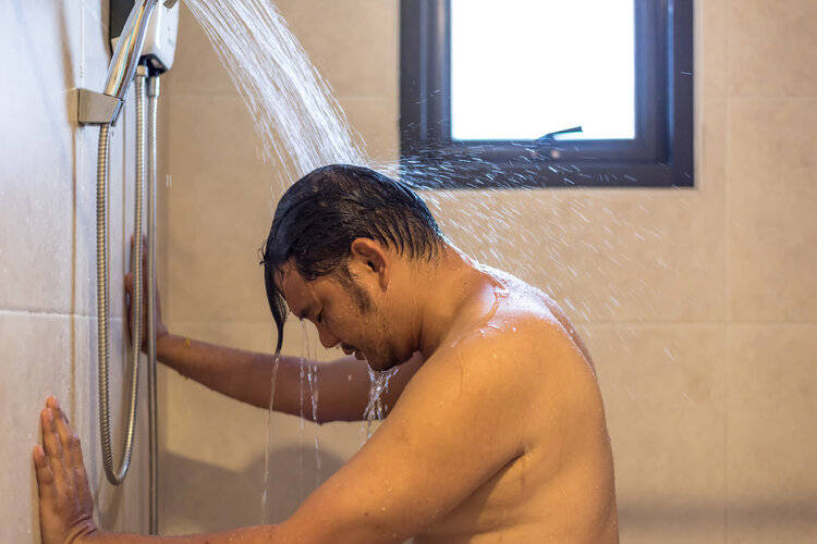 关联点:直接展示淋浴动作,符合冬季洗澡的常见场景。