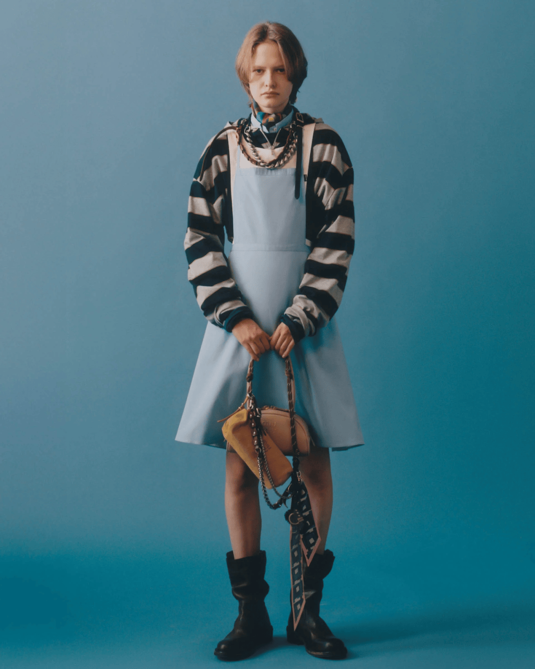 在全新系列中,品牌以融合废土风与学院风的矛盾美学单品为核心,将创意主导权交予真正的风格革新者——身兼音乐人、制作人、作曲家及唱作人多重身份的 Dev Hynes。