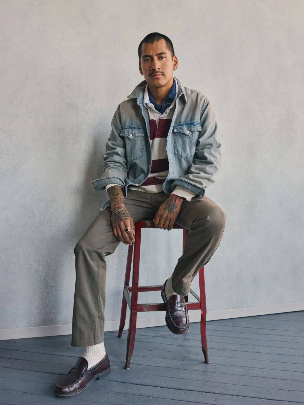 该系列为解构精致型格与不羁质感的冲突平衡,Levi’s® 将目光投向于一位天生游走于两者之间的创造者。