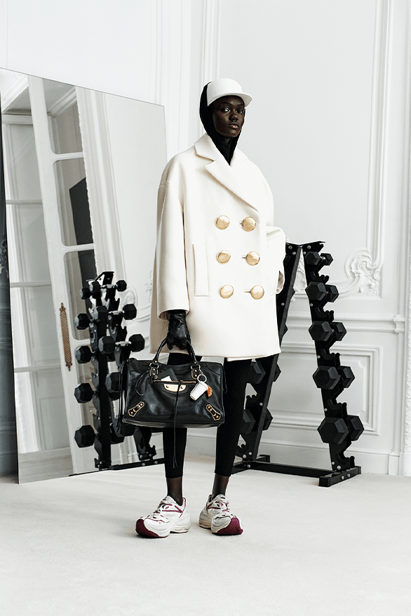 本季让正式剪裁与精致运动单品、舞会级华丽设计正面碰撞,进一步巩固 Piccioli 掌舵下 Balenciaga 的新章节。