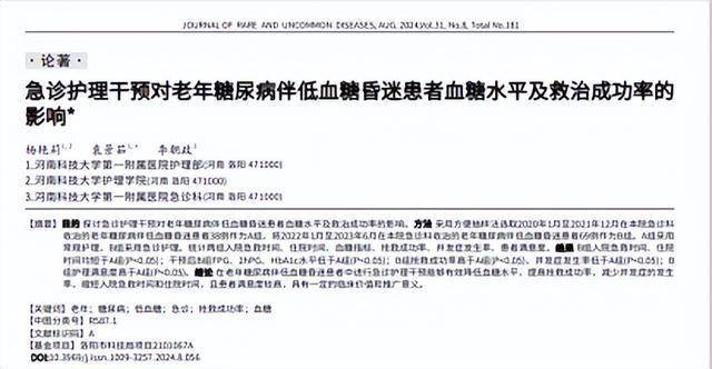 [1]杨艳莉,袁景茹,李朝政.急诊护理干预对老年糖尿病伴低血糖昏迷患者血糖水平及救治成功率的影响[J].罕少疾病杂志,2024
