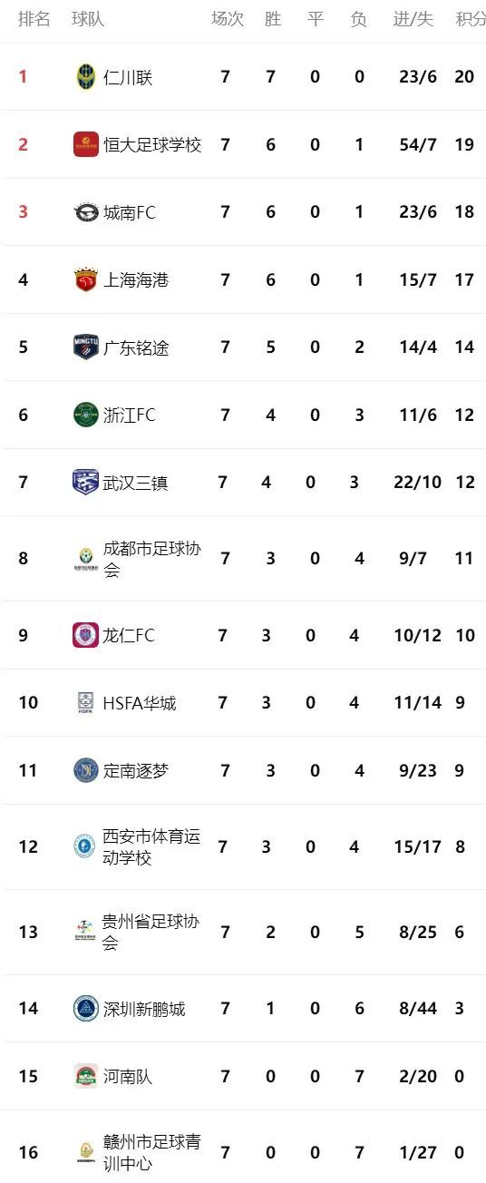 仁川联以3-0击败上海海港U15队,豪取7连胜并积20分,稳居积分榜首位。此胜使其牢牢掌握争冠主动权,末轮只需击败武汉三镇即可锁定冠军。