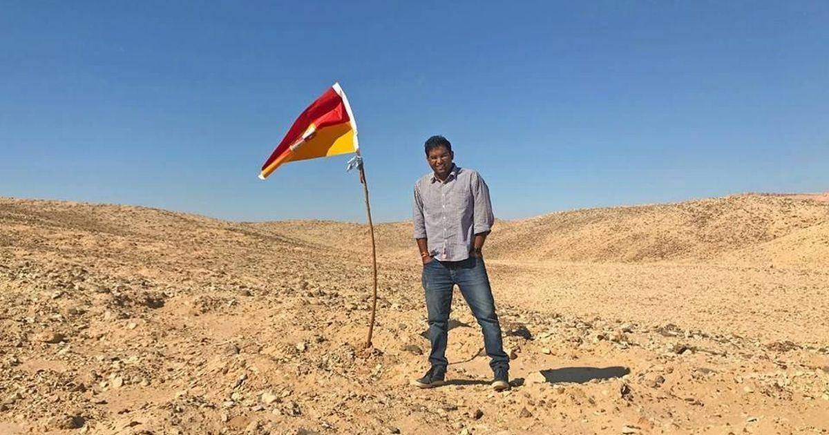 他从弗吉尼亚出发,飞到埃及,再坐车穿越沙漠,历经千辛万苦,终于站在了比尔泰维勒的沙丘上。