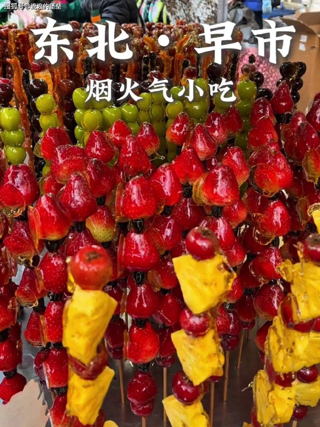 第一种是热气腾腾的糖葫芦。这不仅仅是一串晶莹剔透的果实,而是一段历史的缩影。糖葫芦起源于古代,经过数百年的演变,成为了东北人冬日里不可或缺的美味。它不仅味道甘甜,更承载着人们对美好生活的向往和对家乡的思念。