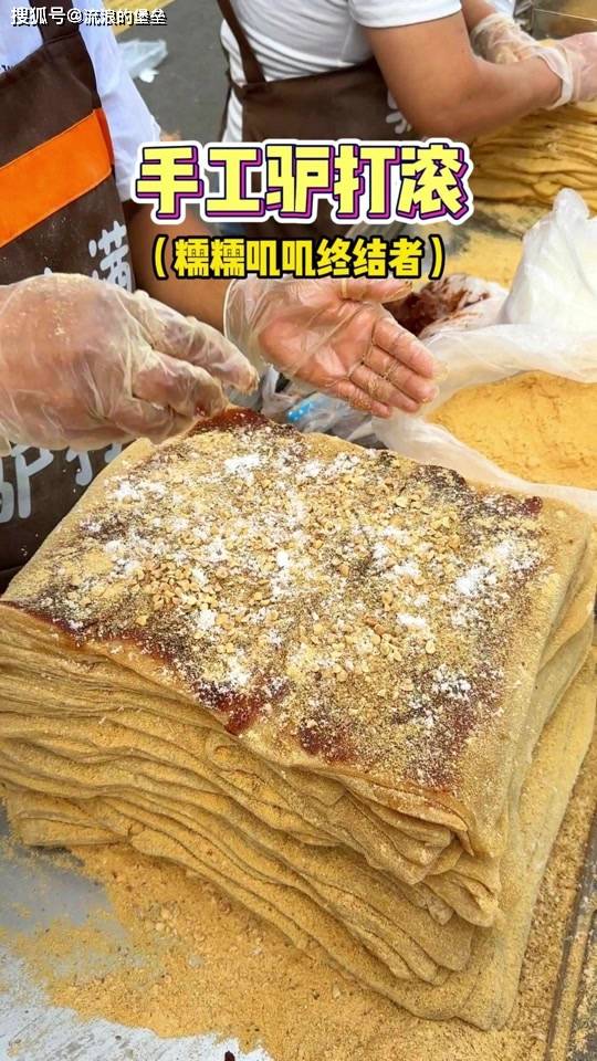 第八种就是驴打滚,也就是我们常说的豆面卷子,其实小编不是很爱吃,因为它太干了,而且不是很甜,吃的只有糯叽叽的口感,但是外地人一般都会来打卡,本地的一些老人,会吃不腻。
