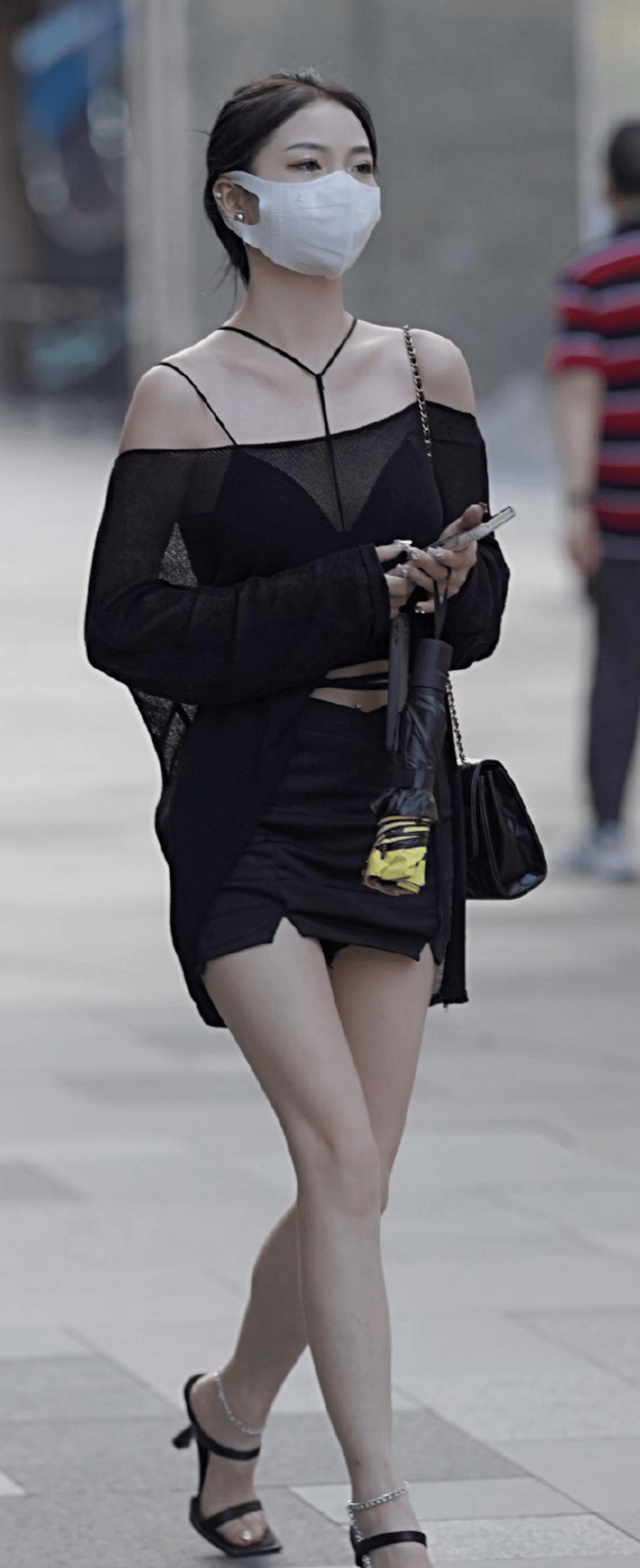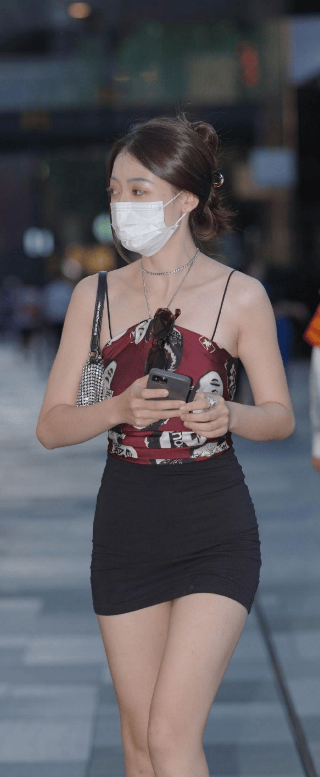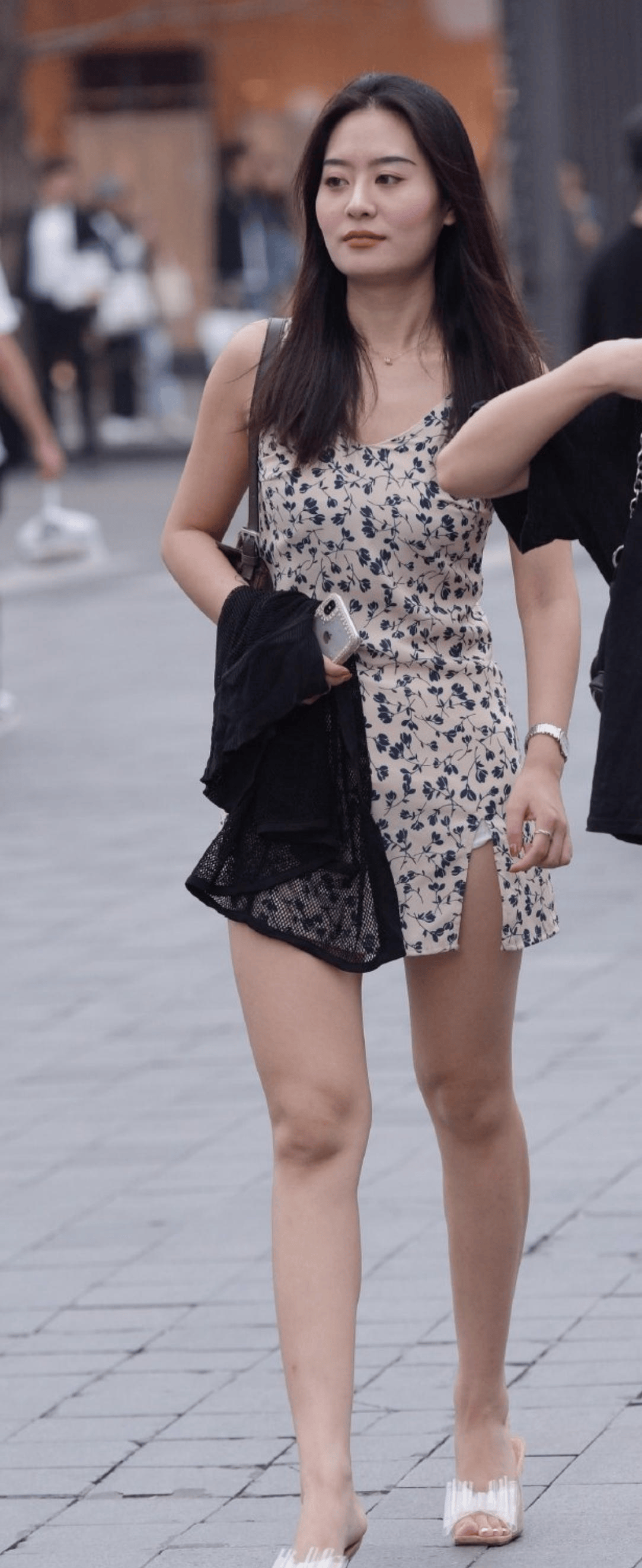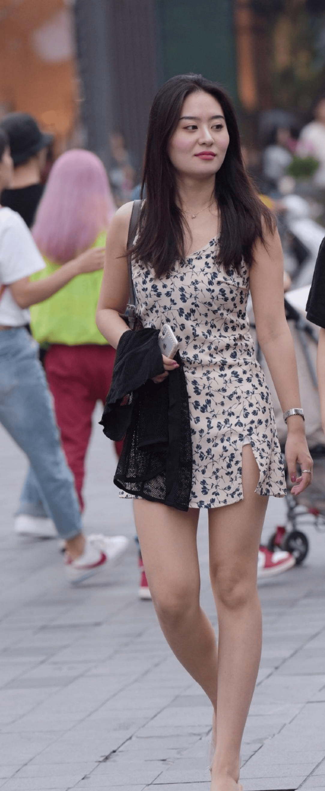 包臀裙下,绽放着清纯的花朵。