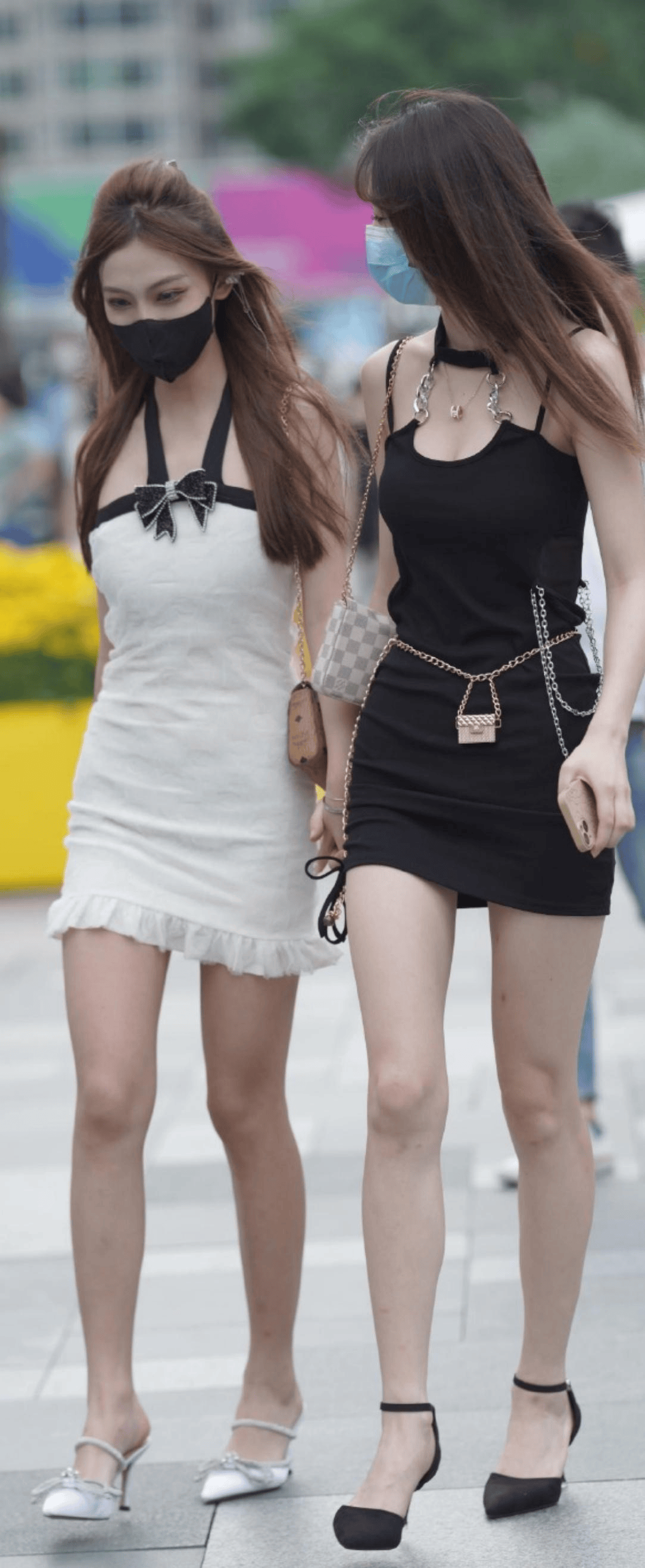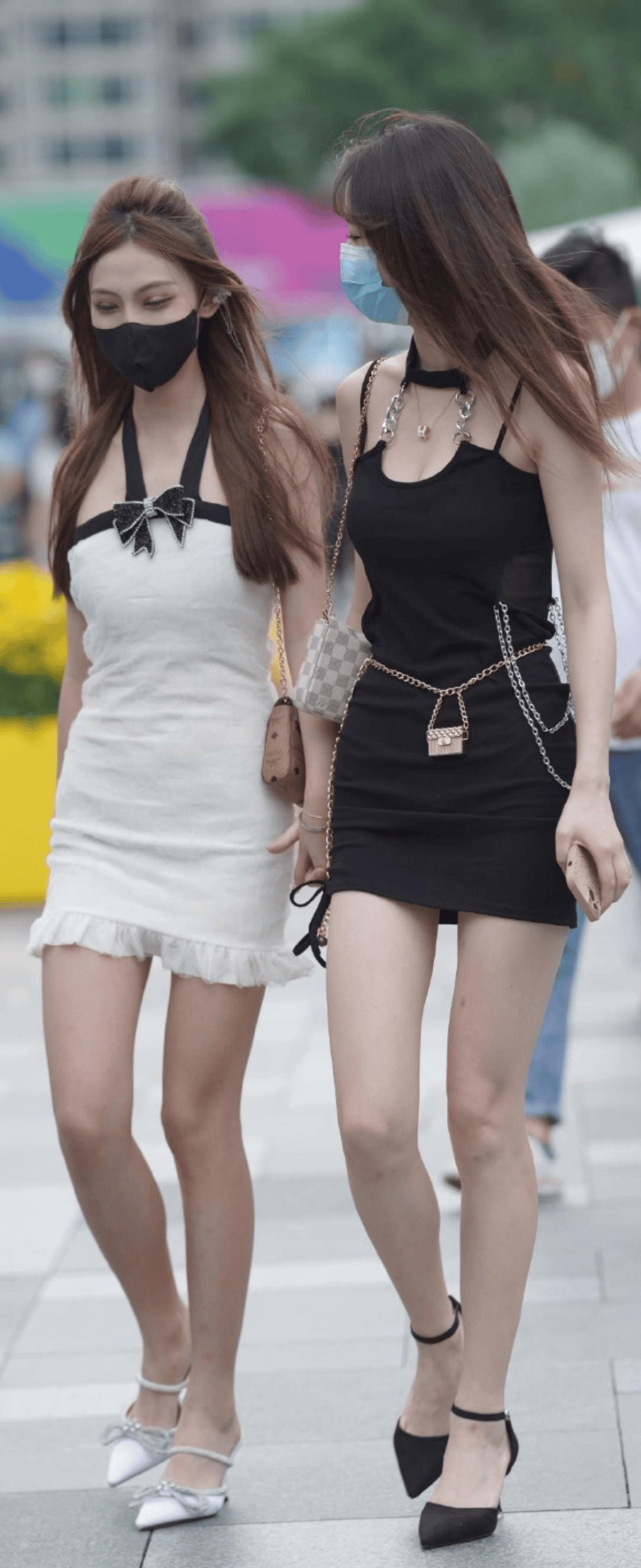 细肩带设计自带少女感,搭配后背或腰侧的蝴蝶结绑带,瞬间增添甜美氛围。绑带不仅能调节松紧,还能在行走时营造灵动效果,避免过于成熟。