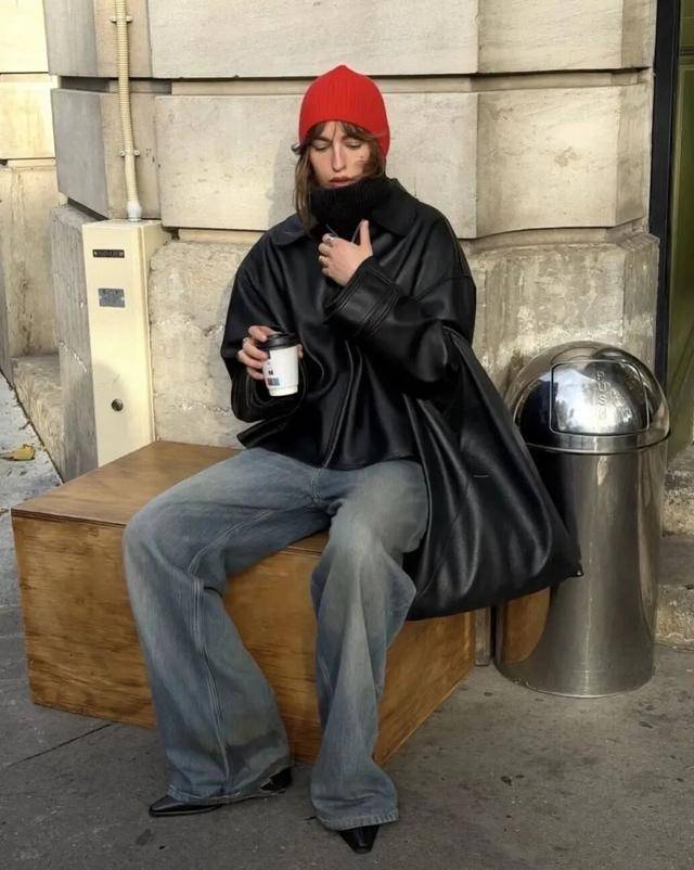 身穿皮衣与牛仔裤,会自然而然地生出一股潇洒帅气的姿态,比大衣利落,比西装不羁,宛若诉说“世事纷扰,我自潇洒”的心境。配饰是点睛之笔。一顶红色的针织冷帽,便能瞬时点亮整体。
