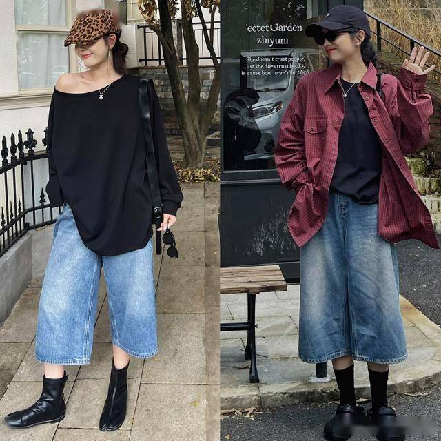 七分牛仔阔腿裤更适合高个子女生,可以穿出随性大气的风格,小个子有些驾驭不了。