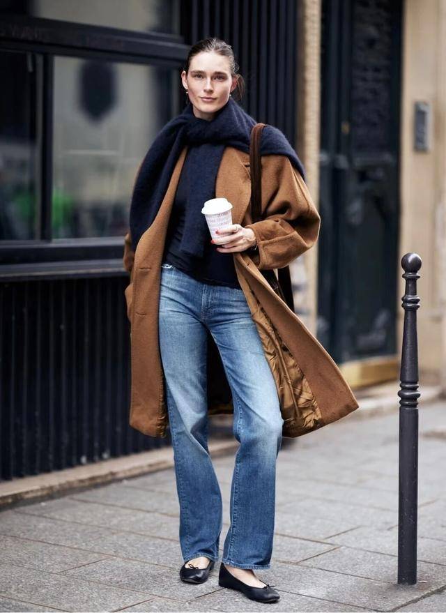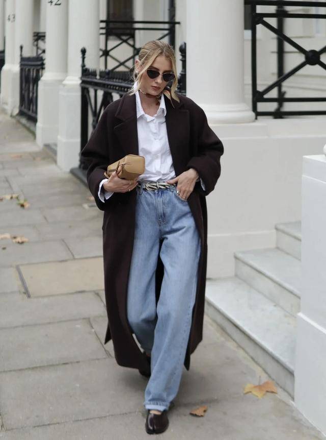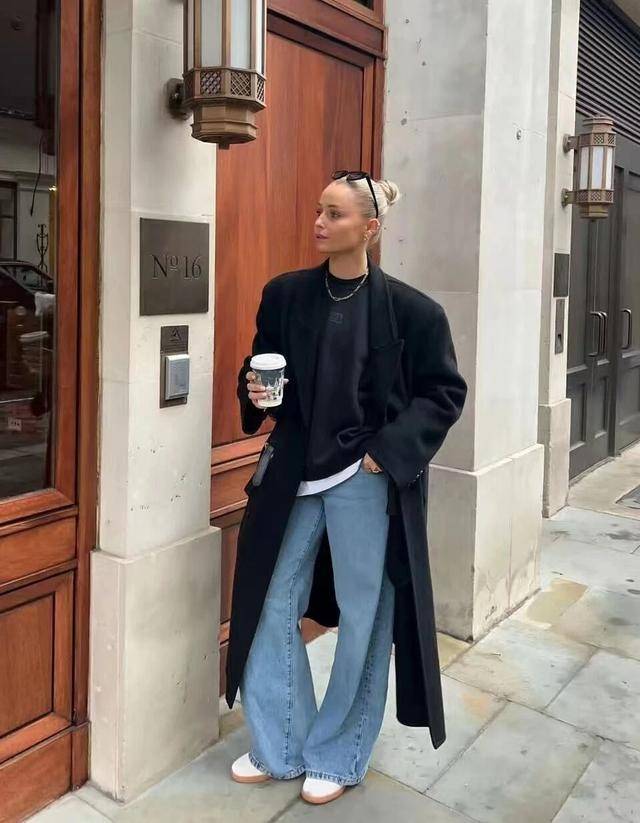 这个组合是秋冬穿搭的天作之合。无论是经典黑色、温柔驼色,还是沉静炭灰,一件质感上乘的羊毛大衣,总能轻易撑起一身气场。而牛仔裤的加入,恰能中和大衣的正式感,注入几分休闲与随意,让优雅的大衣造型焕发鲜活气息。