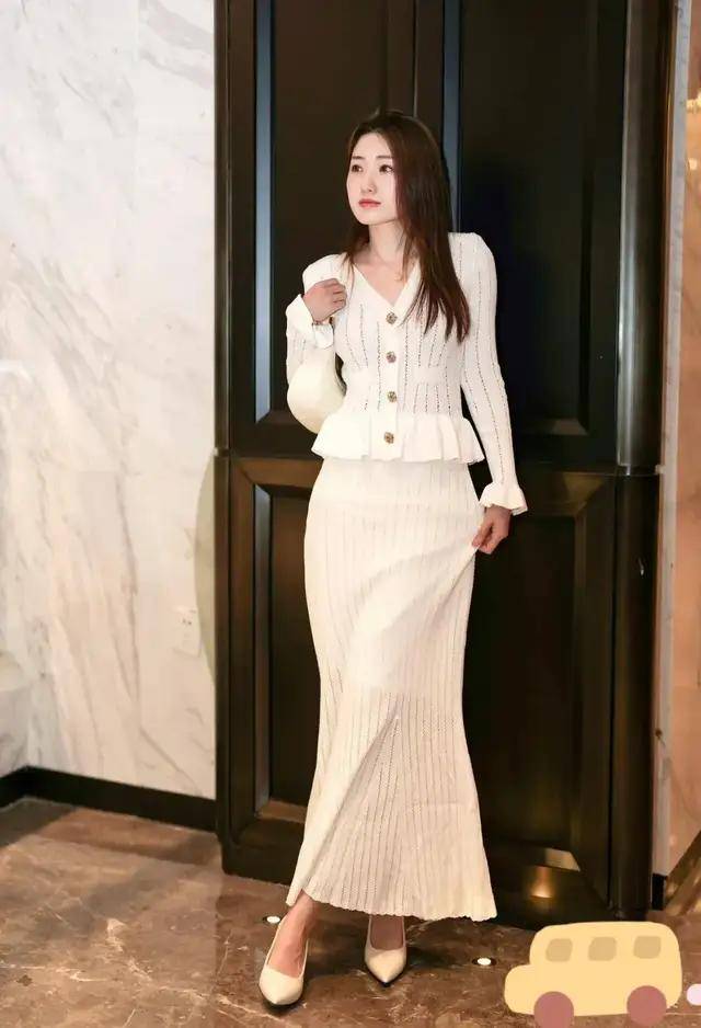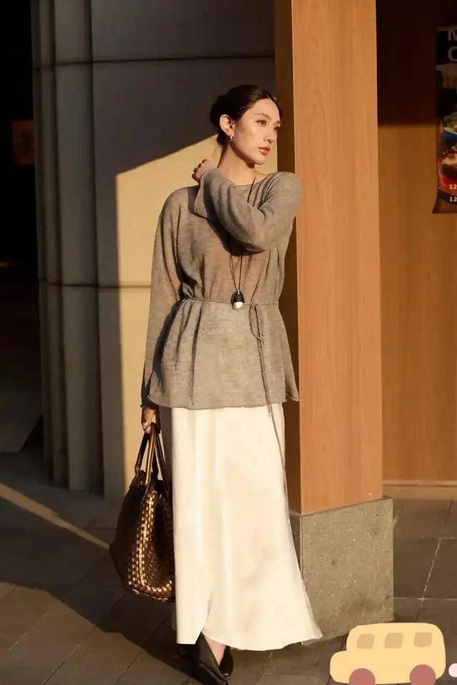 春天的风已带了三分暖意,可选一件稍微透气性好一点的针织衣服,配上白色的真丝半身裙,既高级显贵,还显得很有理性温柔。