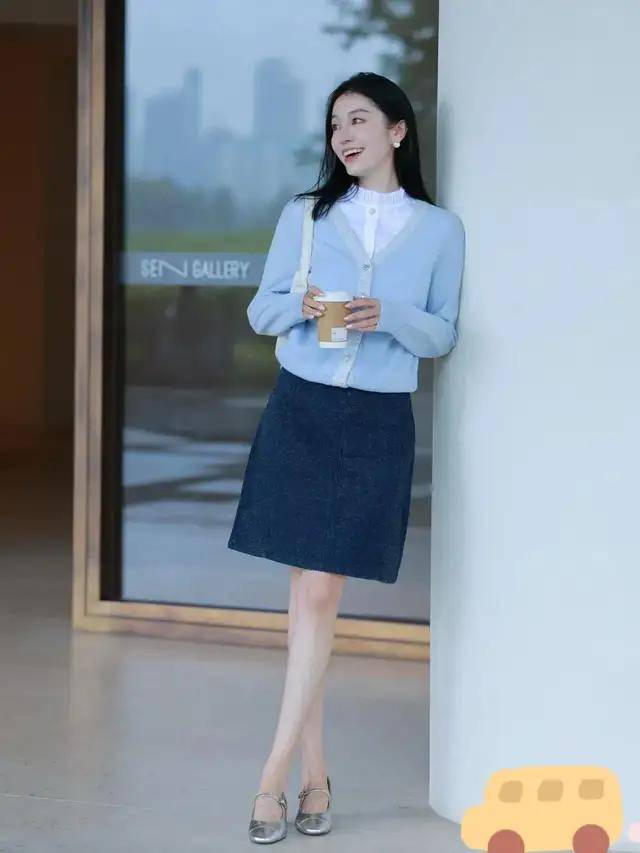 日常喜欢清爽干净又不失时尚感的打扮风格,可以用雾霾蓝的针织上衣搭配上银灰色的直筒裙。脚踩一双银灰色的玛丽珍鞋,这样的打扮轻松提亮整个造型,清冷又温柔。