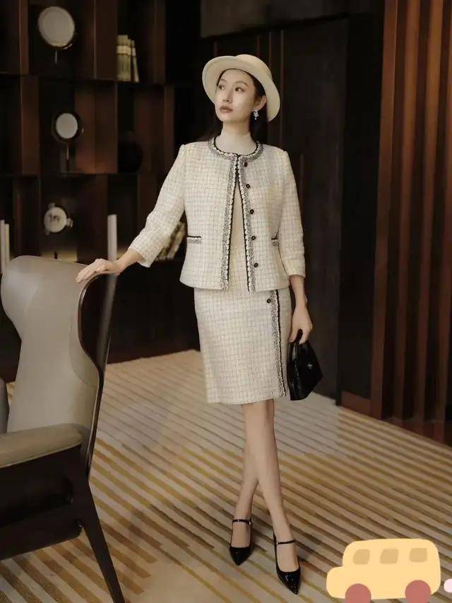 今年春季若是偏爱高贵精致的穿衣风格,可选上面这一套小香风裙装,凭借其独特的版型设计更好地呈现出凹凸有致的身材。