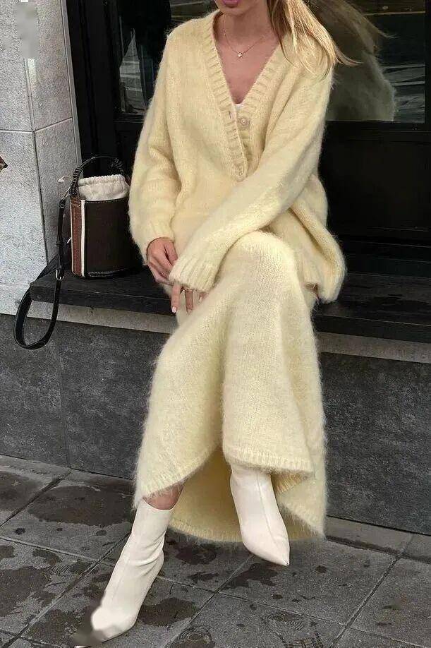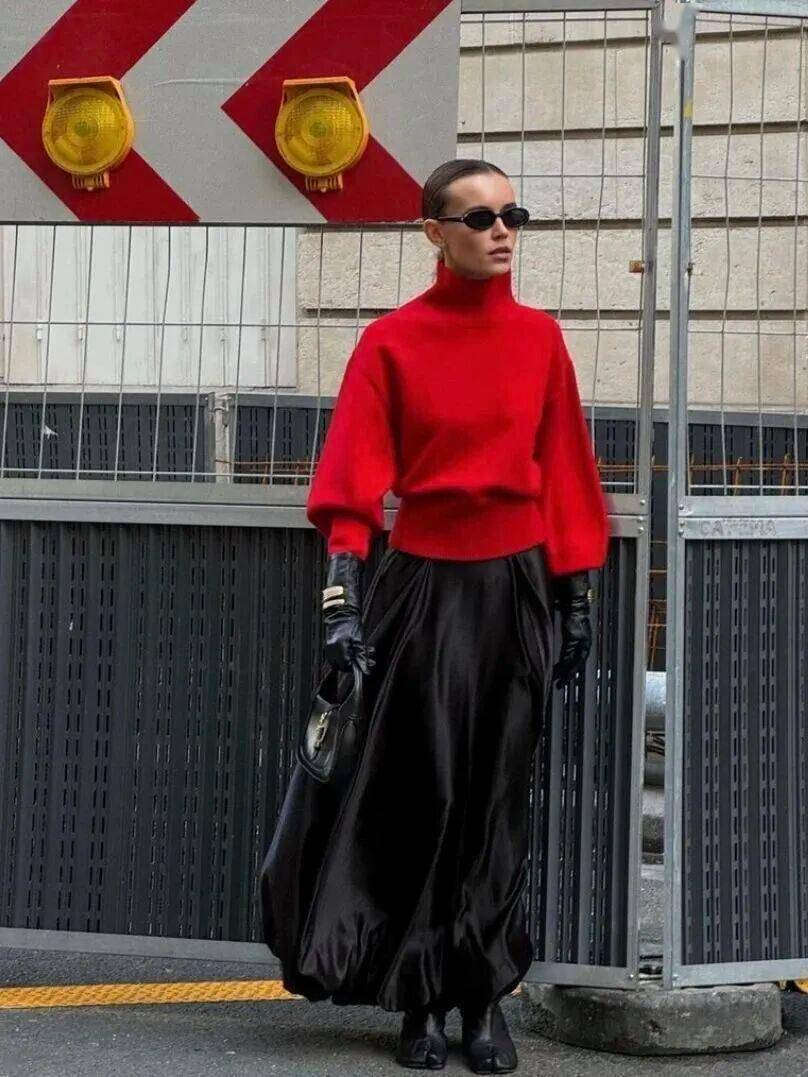 与皮革半裙的清冷截然不同,针织半裙自带软糯的温柔质感,像冬日里的一抹暖阳,穿上身满是治愈感,也成了冬春过渡的绝佳单品。
