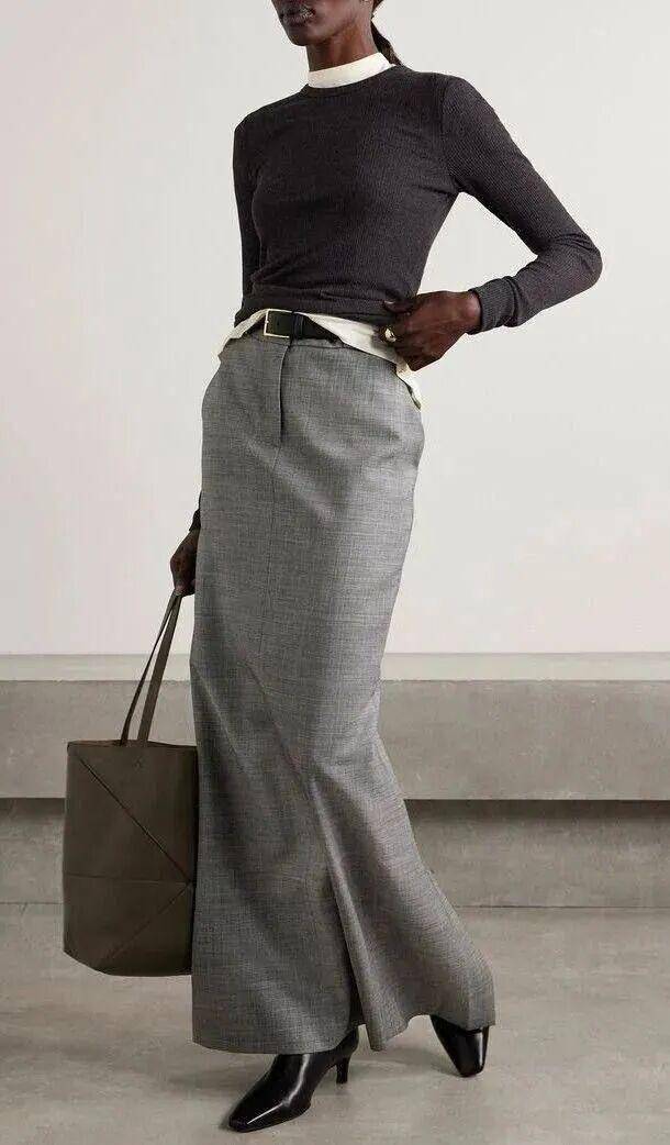 灰色是诠释西装半裙书卷气的最佳底色,经典黑色则是冬日的百搭之选,适配各种穿搭场景。