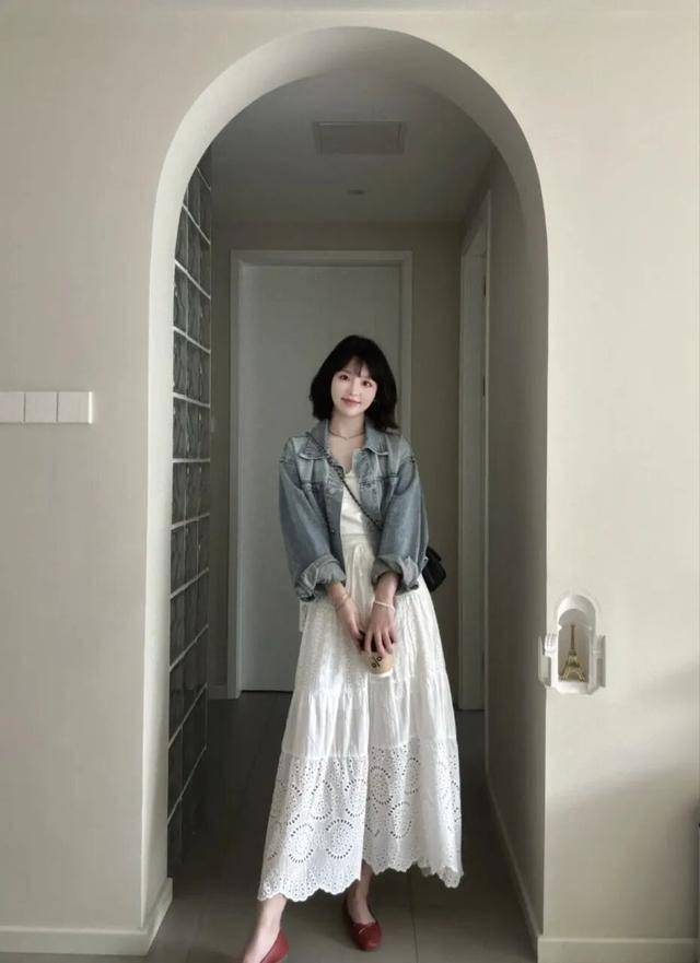 搭配公式:浅蓝牛仔外套 + 碎花连衣裙/纯白T恤 + 薄荷绿/浅粉半身裙