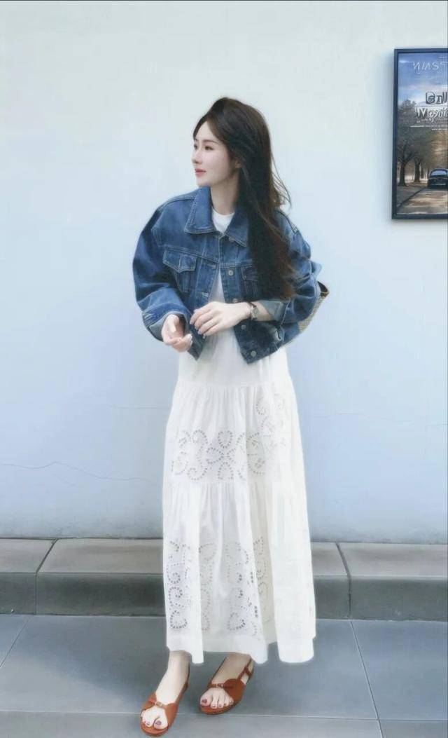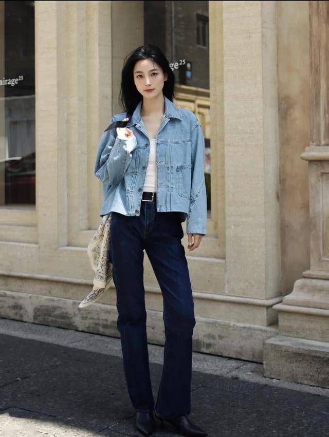 亮点:浅牛仔蓝自带春日滤镜,搭配柔和的马卡龙色内搭(如薄荷绿、浅粉),减龄又治愈。配小白鞋+帆布包,秒变校园初恋风。