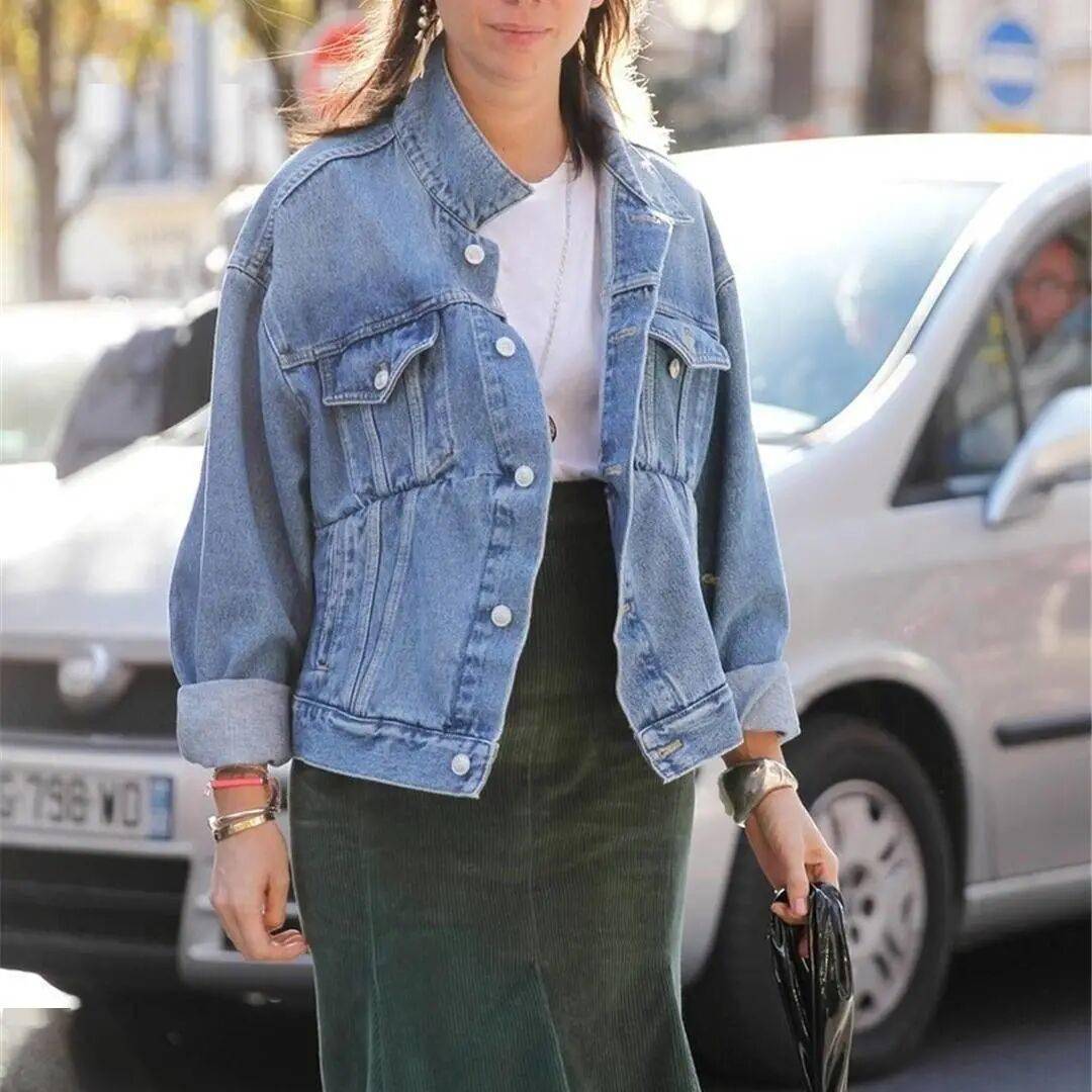 黑色牛仔外套:更显瘦、稳重,适合职场场景,搭配米白或卡其色裙也不沉闷。