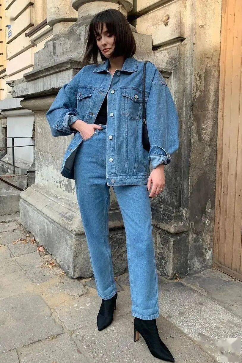 高个子:大胆尝试长款或Oversize牛仔外套,走路带风,气场全开。