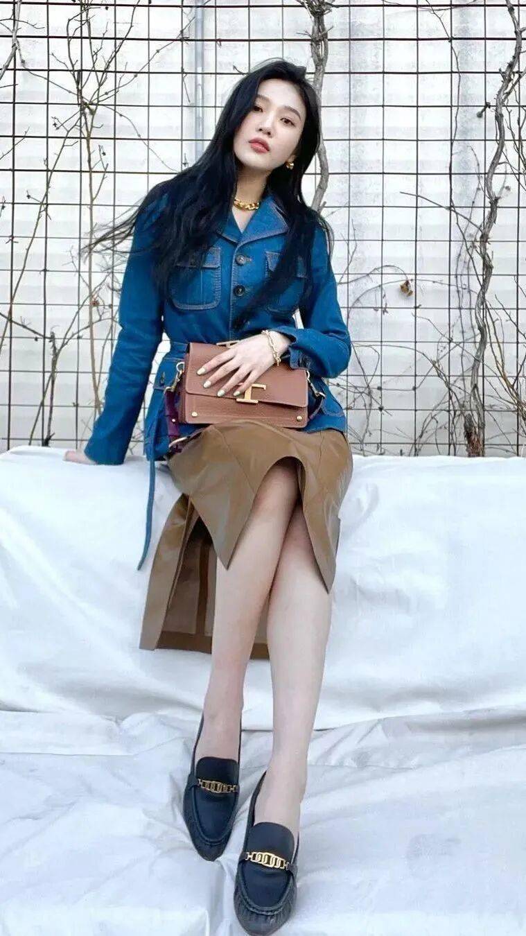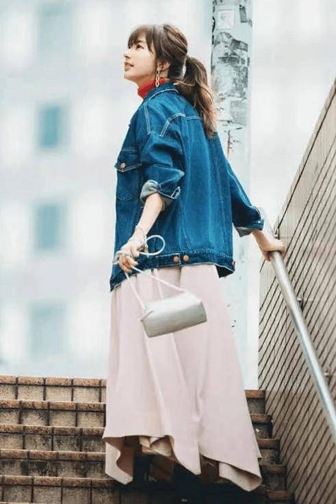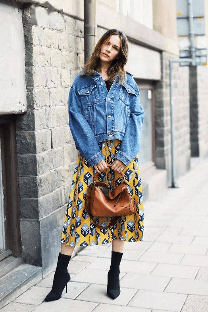 牛仔外套+裙子是今春最火、最显气质的穿法,既能中和裙装的甜腻,又能提升整体造型的时髦度,谁穿谁美。