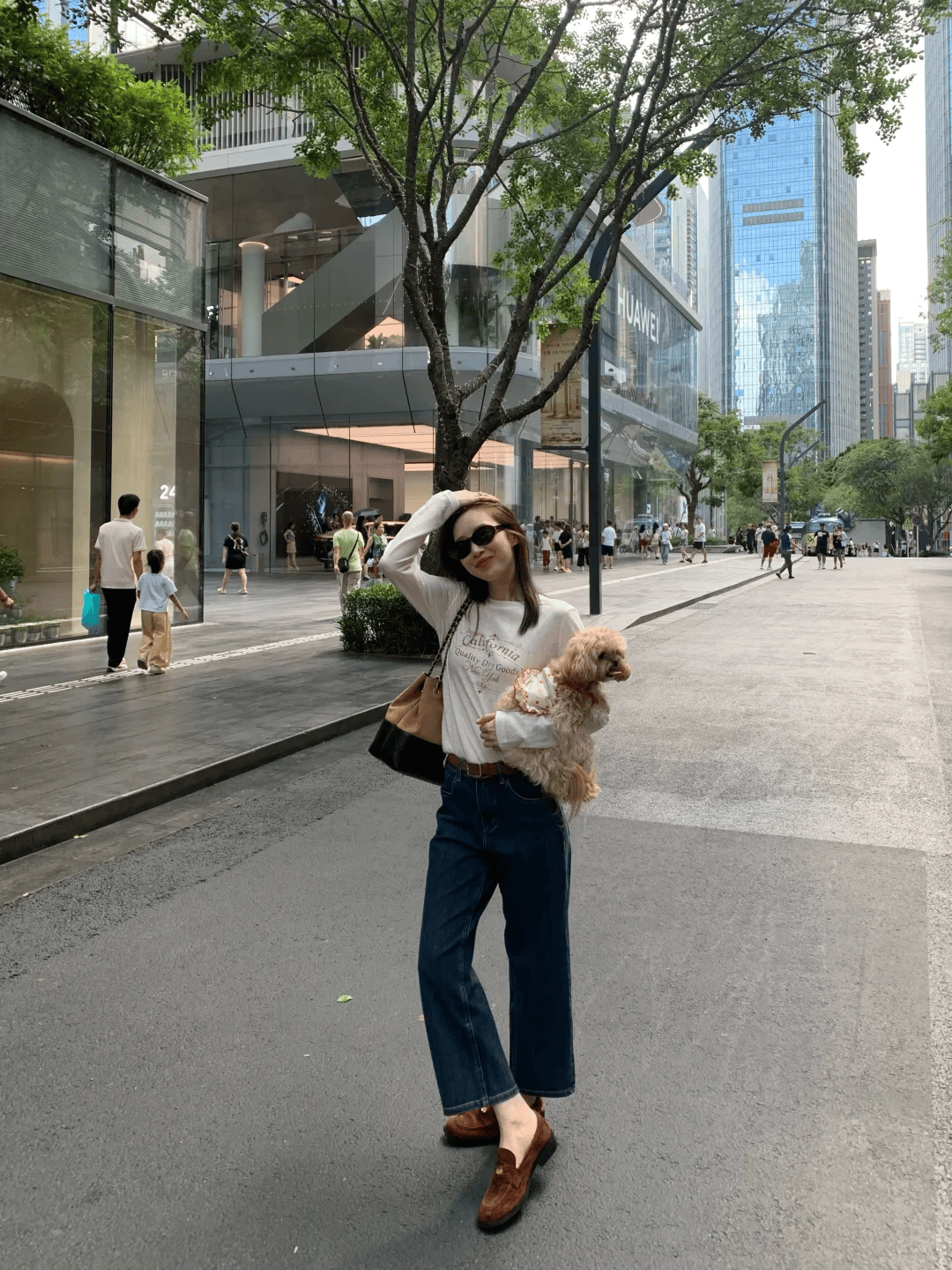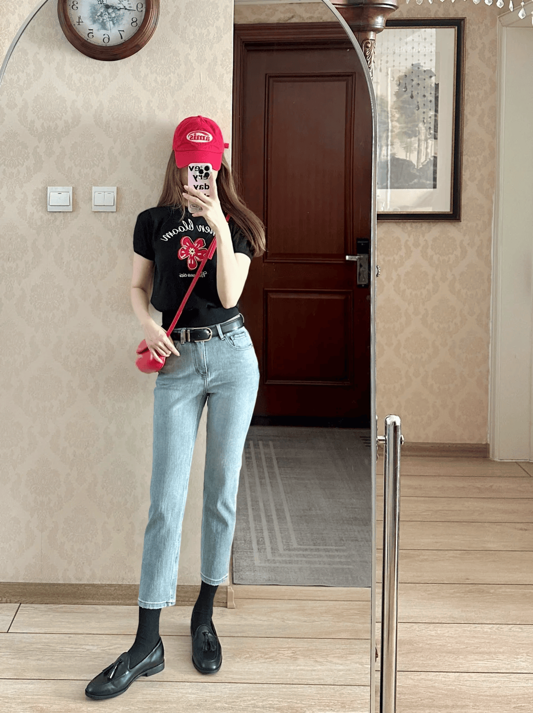 随着气温逐渐回暖,天气好的时候,都开始穿T恤了,其实T恤+牛仔裤再配乐福鞋,也是非常显精致且休闲感十足的穿搭,而且牛仔裤也不怎么挑鞋子颜色,基本上大部分主流色都可以搭配。