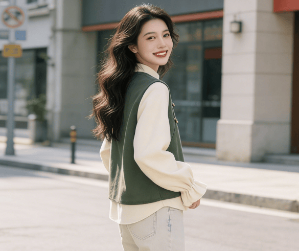 当然,春季穿搭更要讲究活力感,可以选择彩色系毛衣作为主单品,比如淡黄色针织开衫,搭配高腰卷边牛仔裤,黑色厚底乐福鞋,沉稳又高级,非常适合通勤的穿搭。四、马甲+牛仔裤+乐福鞋