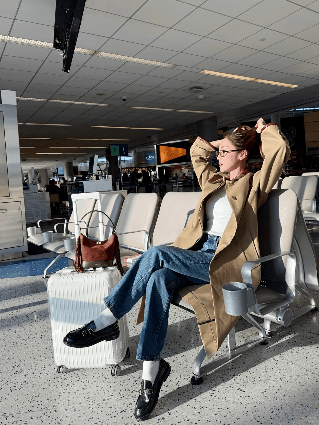 乐福鞋的特点就是无鞋带平底设计,主打舒适便捷又百搭,设计简约大方,经典的马衔扣或者流苏点缀,精致又高级,与牛仔裤的时髦减龄搭配在一起,绝对让你在春季街头赚足回头率。一、大衣+牛仔裤+乐福鞋