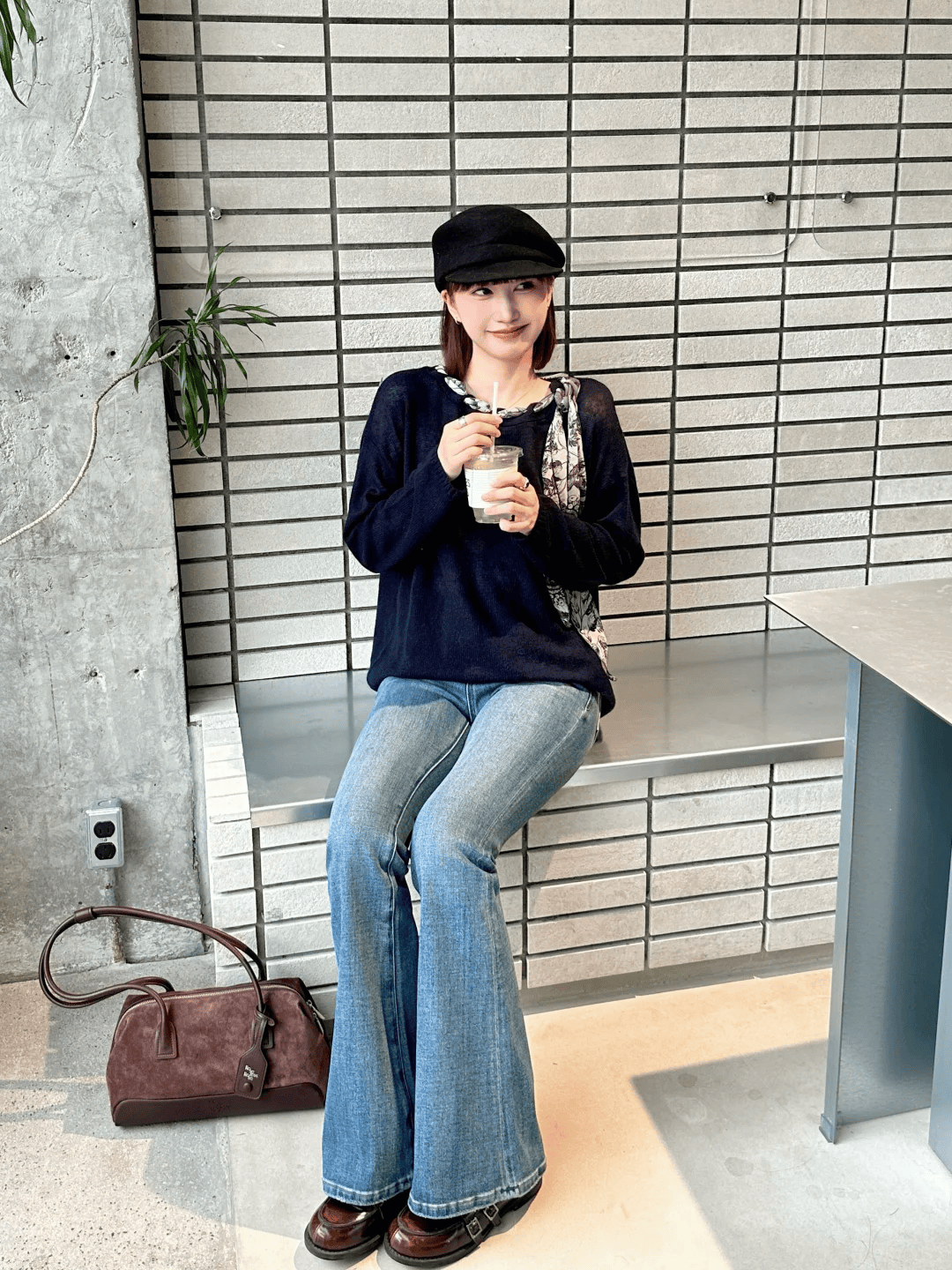 无论是卫衣还是毛衣,都是非常休闲舒适且百搭的单品,选择搭配修身的微喇牛仔裤,衔接一双棕色乐福鞋,整体穿搭温柔中透着复古的精致,绝对是春季出行的王炸穿搭。