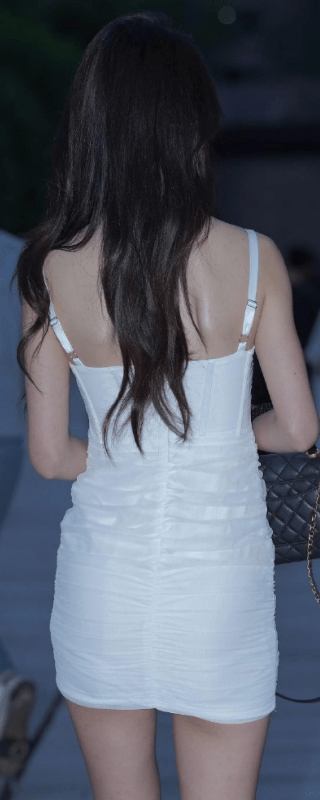 蝴蝶骨明显者:大胆选择大露背设计(如迪丽热巴),展现骨感美;若背部微肉,可选绑带局部露背或垂感宽松款。