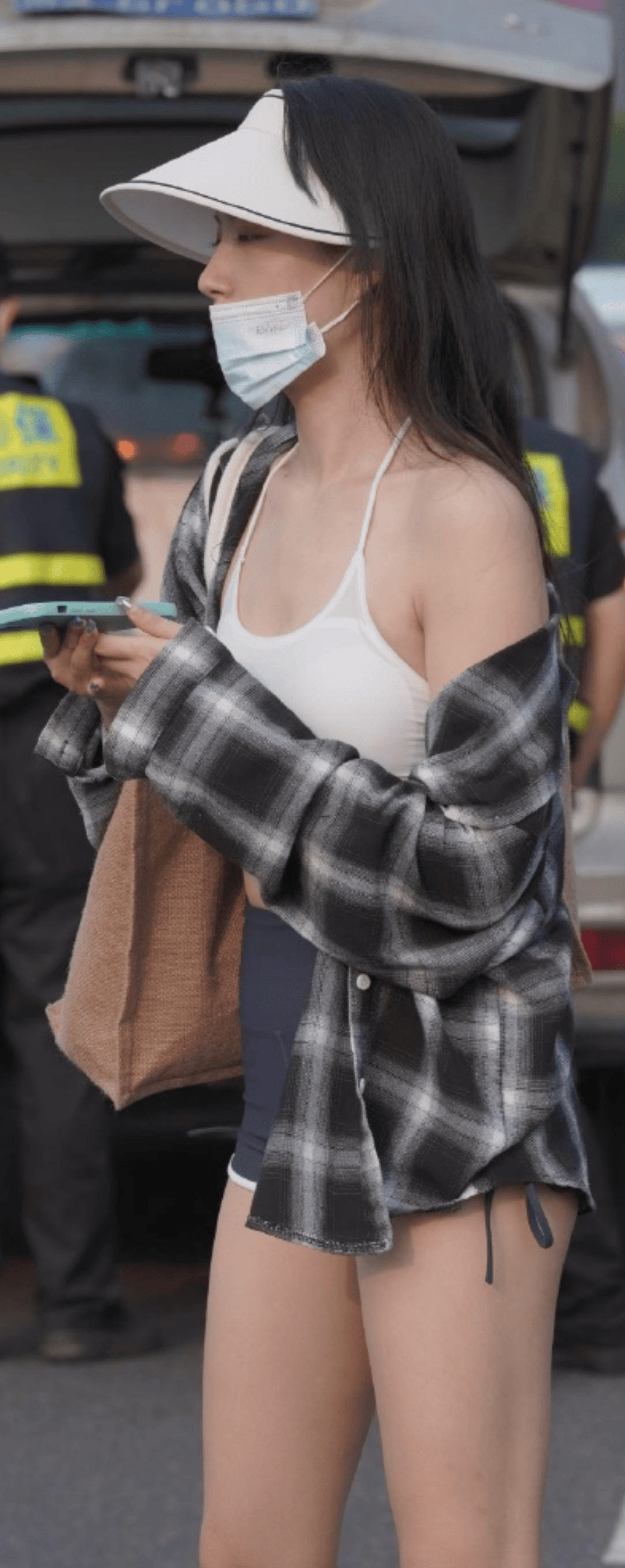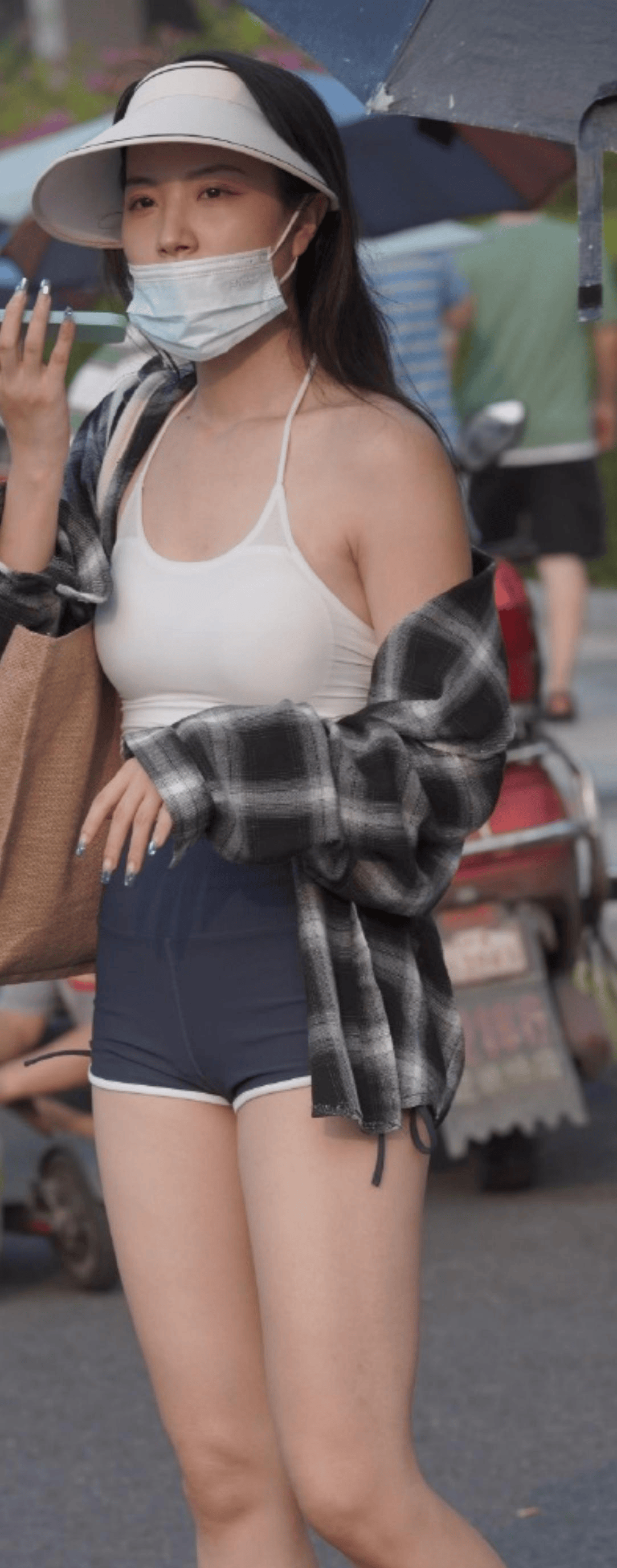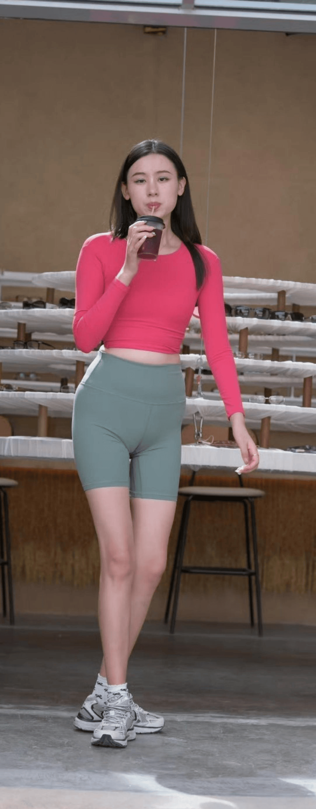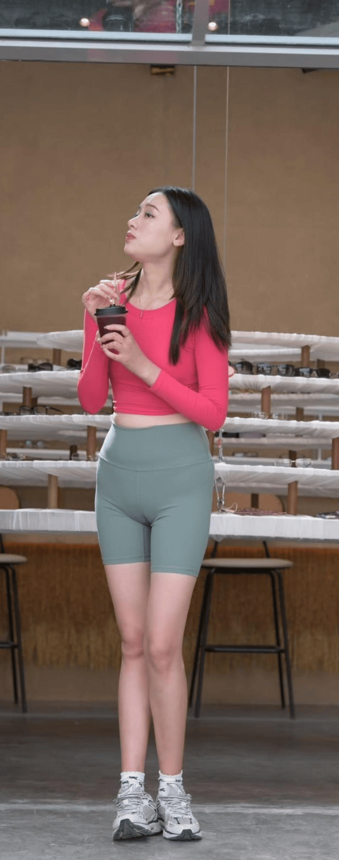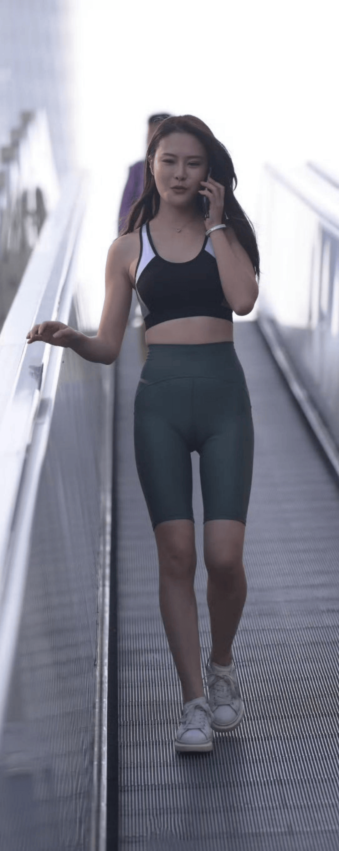 运动约会:侧边镂空瑜伽裤+短款运动背心,外搭oversize衬衫,性感与随性兼具。
