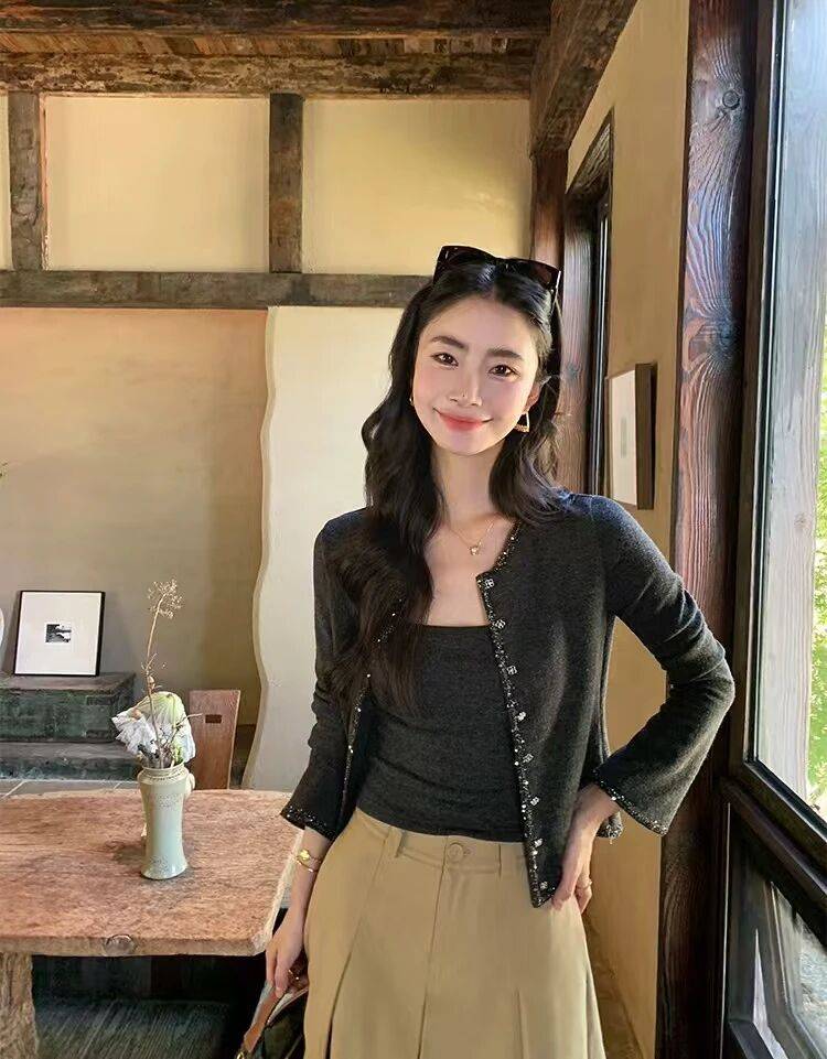 格雷灰小开衫+吊带,开春这一套好优雅