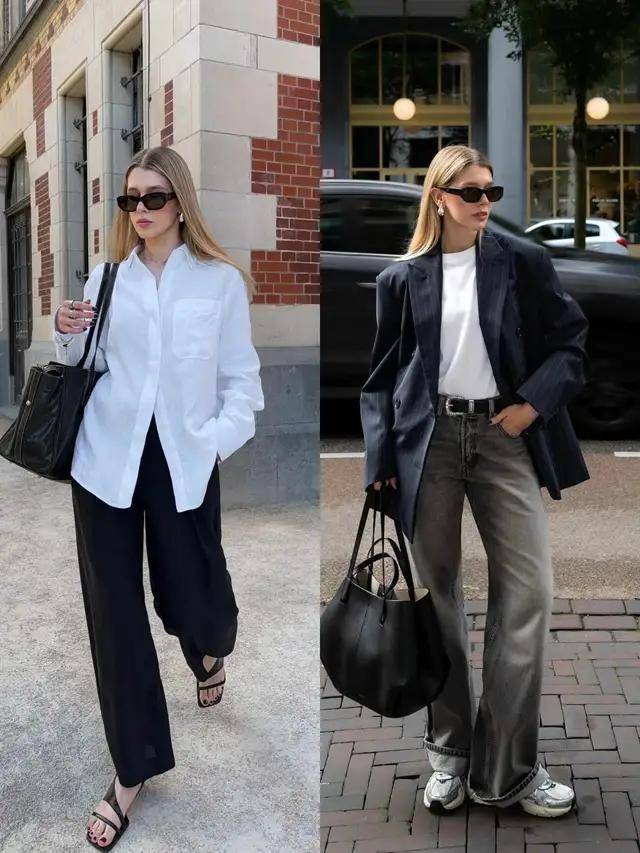 可根据下装的裤子版型来选择鞋子款式,偏爱休闲风可选牛仔裤搭配老爹鞋。偏爱干练风,可选西装裤搭配乐福鞋,浅口低跟单鞋。