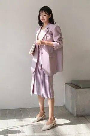 自带优雅属性的百褶裙与西装外套是天造地设般的登对组合。两者搭配实现1+1>2的理想穿搭效果,复古浪漫又文艺优雅。裙摆飞扬的百褶裙为西装look增添轻盈灵动的感觉,无论职场通勤还是日常约会,都能让你成为耀眼迷人的存在。