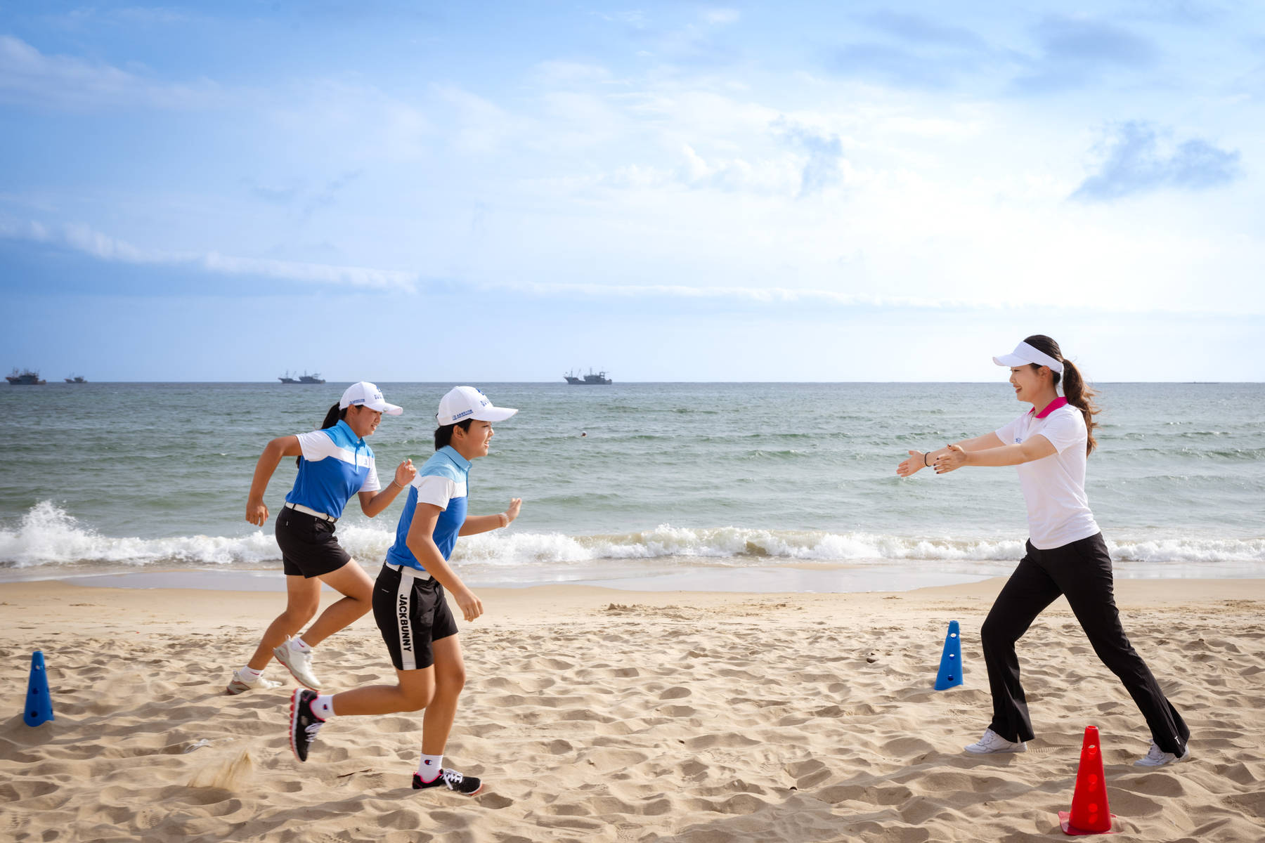 海南绿城蓝湾小镇以11米海水能见度、全球稀缺“会唱歌的沙滩”闻名,球场保留千年沙丘动感地势,火山岩与三角梅点缀其间。球员在椰林海风间挥杆,构成“人、场、景”和谐画卷,赛事摄影作品兼具运动张力与艺术美感。