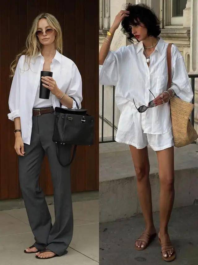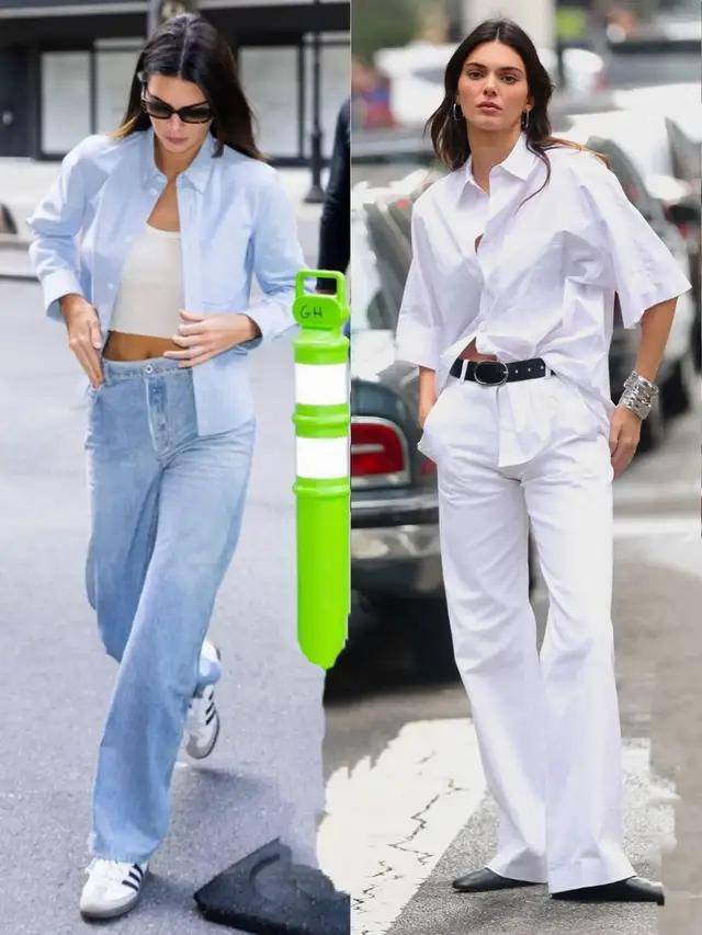 衬衫搭配牛仔裤、西装裤在今年春季爆火,时髦精们都爱穿衬衫配牛仔裤、西裤出门,上身效果简约干练,休闲洋气。