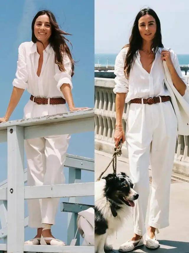 Tips③:棉麻白衬衫+白色西裤